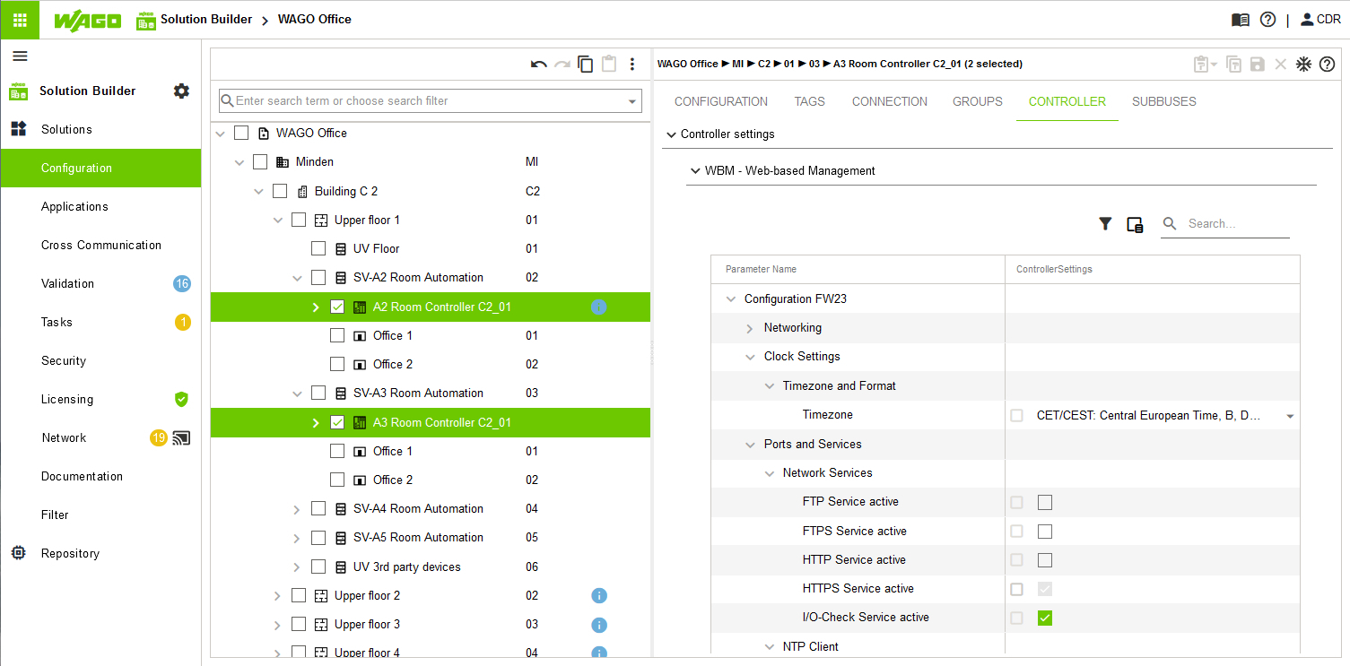 Der WAGO Solution Builder begleitet das Projekt von der Auftragsvergabe über die Inbetriebnahme, Fertigstellung und Dokumentation bis hin zur wiederkehrenden Wartung und Pflege von Hard- und Software. Die Software erlaubt es, mehrere Lösungen für die Gebäudeautomation parallel zu erstellen und stellt stets alle Daten zur Verfügung.