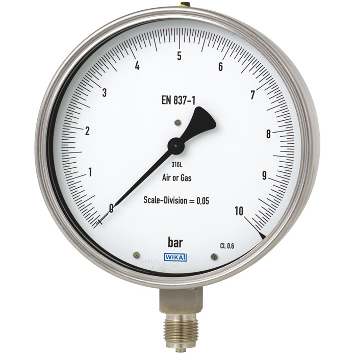 FeinmessausführungTyp: 332.50Technische Daten nach Datenblatt: PM 03.06Gehäuse: CrNi-StahlRing: Bajonettring, CrNi-StahlGehäusefüllung: ohneNenngröße: 160 mmEinheit Hauptskale: barMessbereich: Überdruck-MessbereichAnzeigebereich: 0...160 barProzessanschluss: G 1/2 BWerkstoff Prozessanschluss: CrNi-StahlWerkstoff Messglied: CrNi-StahlAnschlusslage: untenSichtscheibe: Mehrschichten-SicherheitsglasZeiger: SchneidenzeigerGenauigkeitsklasse: Klasse 0,6Überlastsicherheit: Überlastsicherheit 1,3 fachzulässige Umgebungstemperatur: -40 +60 °Czulässige Messstofftemperatur: + 200 °CManometer-Standard: International (Europa)Herstellerlogo: *WIKA*Seriennummer auf Zifferblatt: FORTLFD.-NR. *...*mit Gewindeschutzkappe