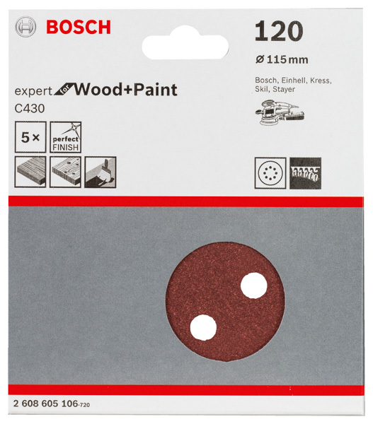 Bosch Power Tools Schleifblatt C430, 115 mm, 120 8 Löcher Klett 2608605106