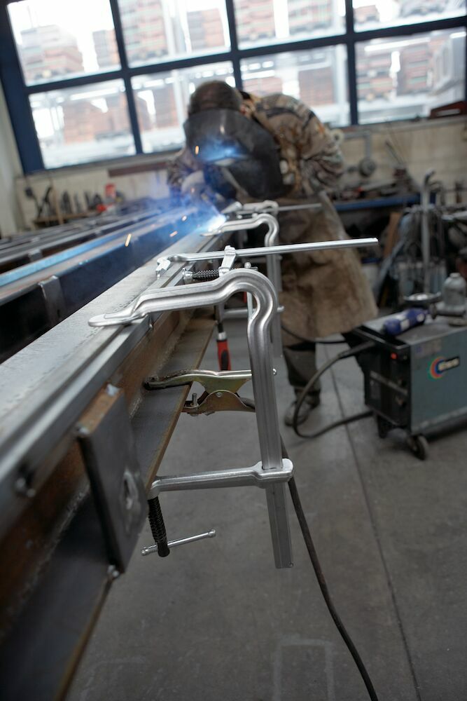 Spannkraft bis zu 5.000 N Festbügel mit patentiertem OMEGA-Bogen für weniger Spannkraftverlust selbst bei Vibrationen Vergüteter Gleit- und Festbügel für federndes und elastisches Spannen Knebelgriff mit abgerundeten Enden für einfache Kraftübertragung beim Anspannen Werkzeuglos wechselbare Druckplatten