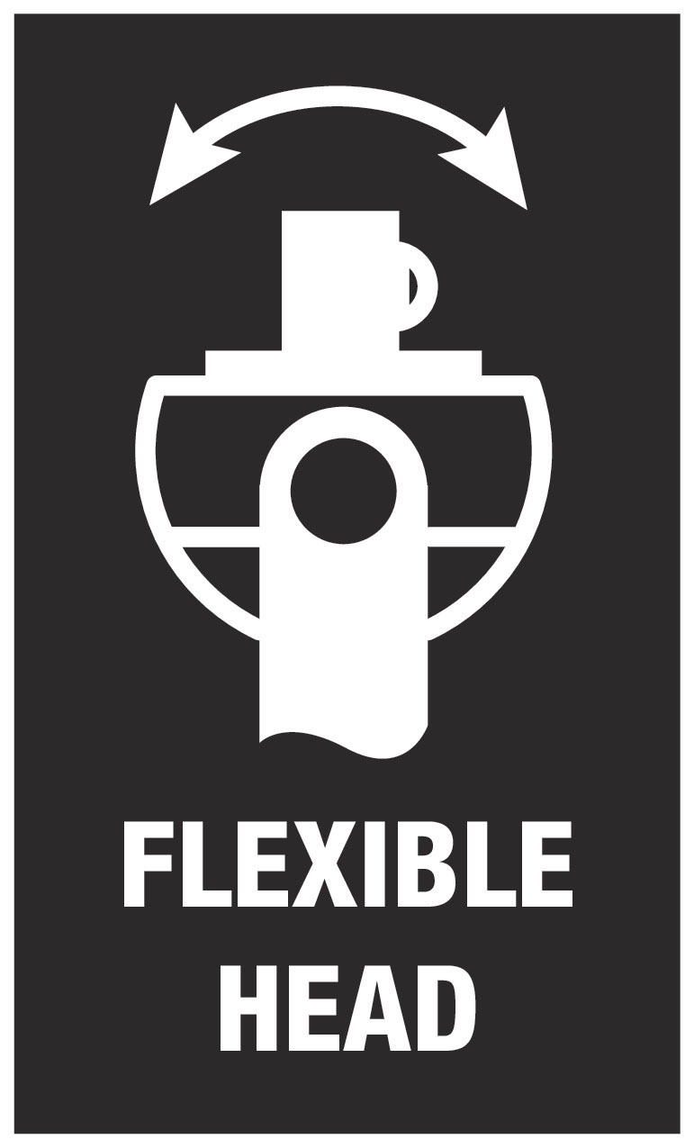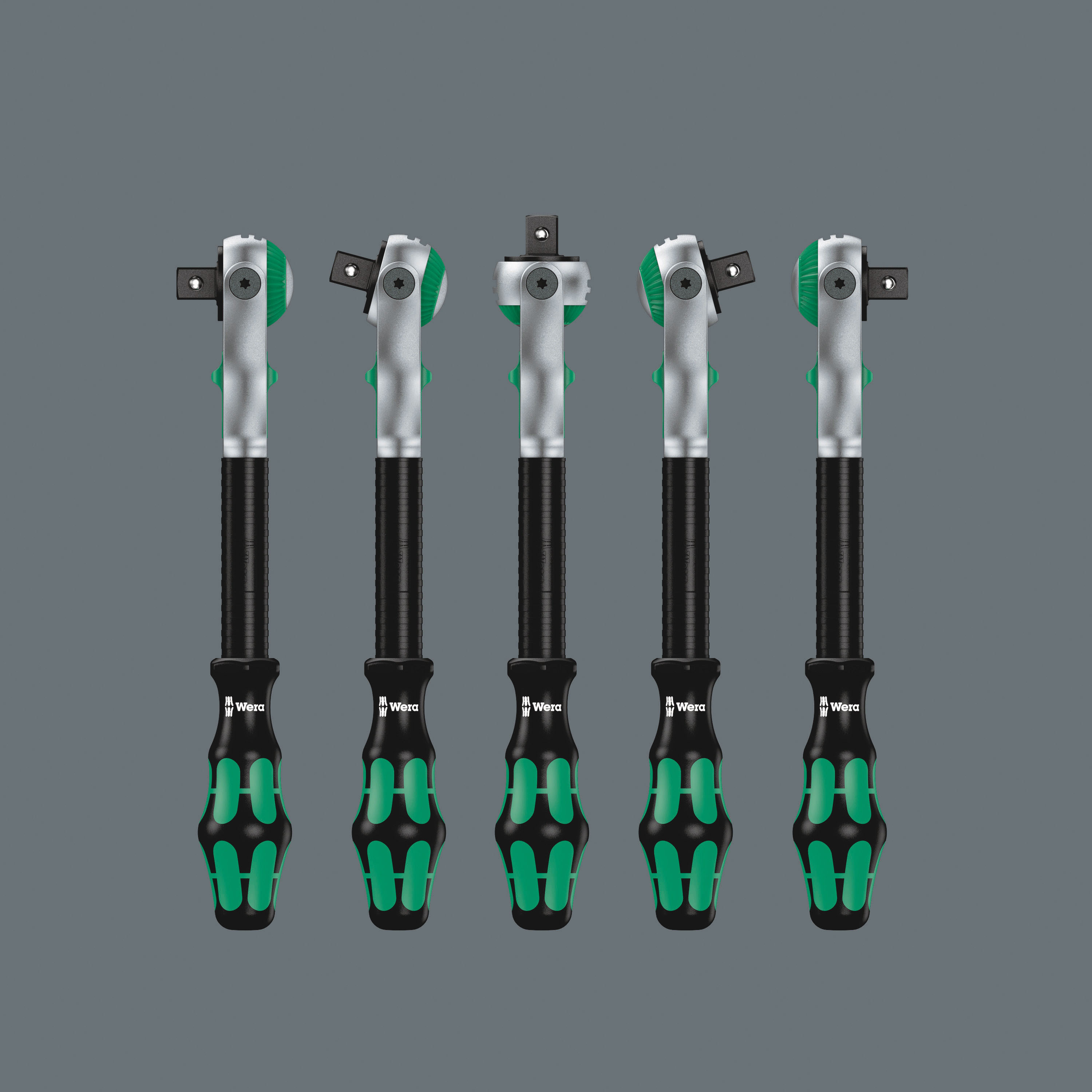-Antrieb. Aufgrund der Feinverzahnung mit 72 Zähnen wird ein niedriger Rückholwinkel von 5° ermöglicht. Der Knarrenkopf ist frei schwenkbar und kann durch den beidseitig angebrachten Schiebeschalter in jeder Position verriegelt werden. Problemloses Arbeiten mit großem Handfreiraum ist selbst in sehr engen oder schwer zu erreichenden Einbausituationen möglich. Die definierte Fixierung bei 0°, 15° und 90° nach links und rechts garantiert sicheres Arbeiten ohne Verrutschen des Knarrenkopfes. In der 0°-Position ist die Knarre mit Adapter und Bit wie ein herkömmlicher Schraubendreher einsetzbar. Die Schwungmassenkonstruktion sorgt für die Beschleunigung des Schraubprozesses. Der rotationssymmetrische Aufbau des Kraftform-Griffs und die Freilaufhülse unterstützen das rasante Zwirbeln. Durch die hervorragend an die Hand angepasste Form des Kraftform-Griffs werden Handverletzungen wie Blasen und Schwielen vermieden. Die für den Griff verwendeten harten Materialien garantieren schnelles Umgreifen ohne die Gefahr des "